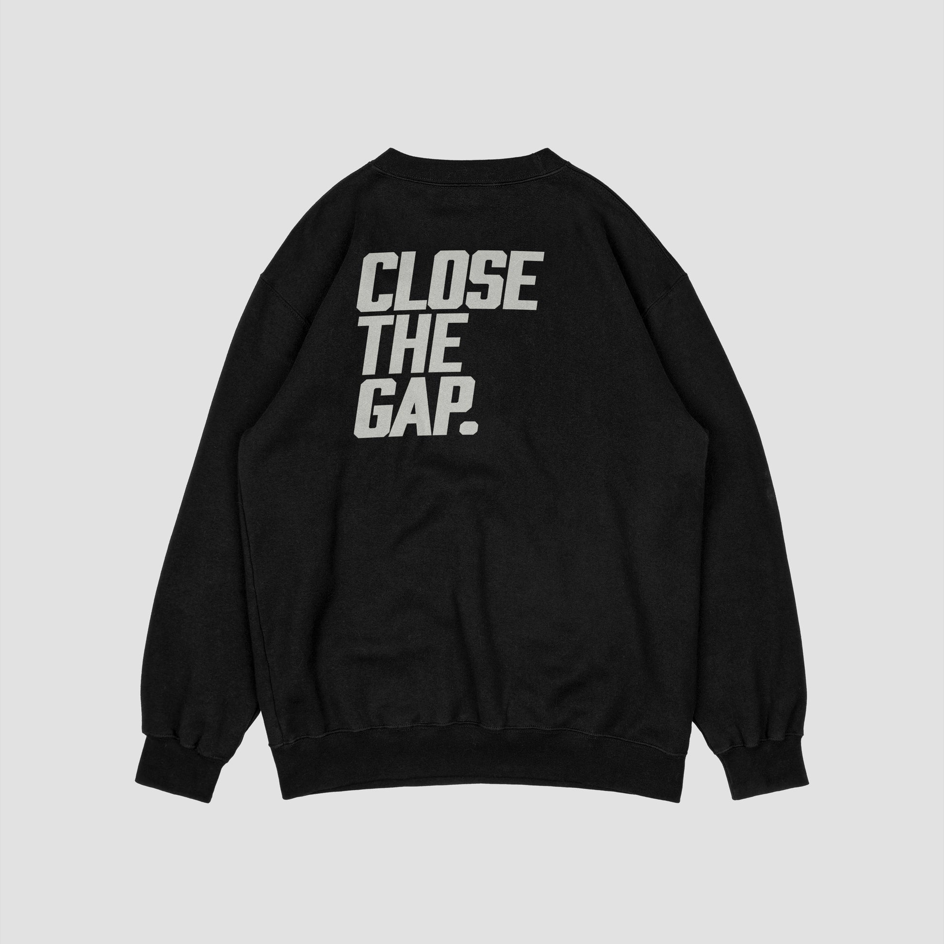 The bold "CLOSE THE GAP." slogan commands attention on the back, while the left-aligned emblem on the front adds a modern, minimalist edge—symbolizing forward momentum.