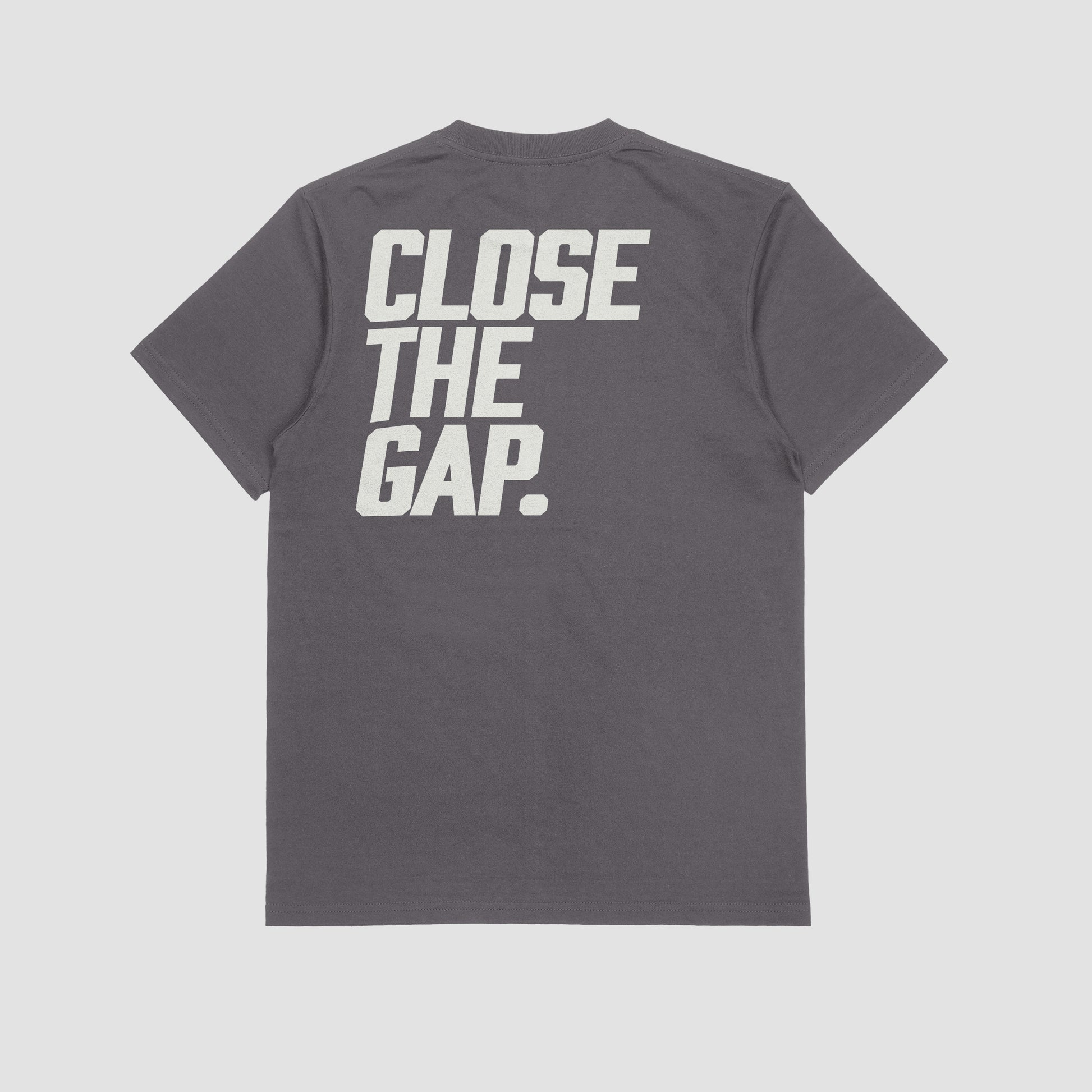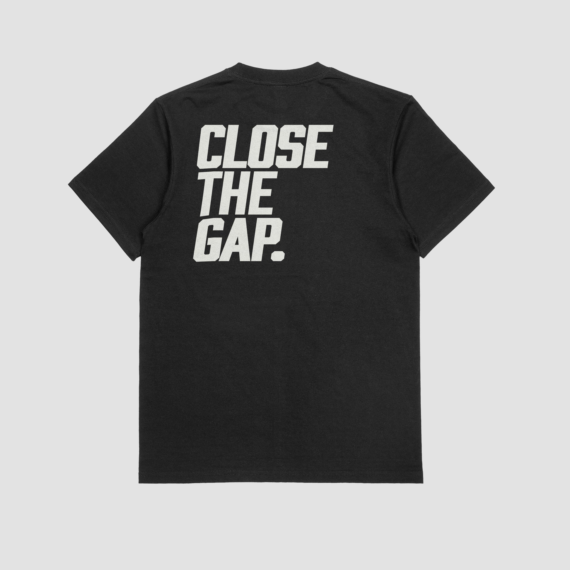The bold "CLOSE THE GAP." slogan commands attention on the back, while the left-aligned emblem on the front adds a modern, minimalist edge—symbolizing forward momentum.