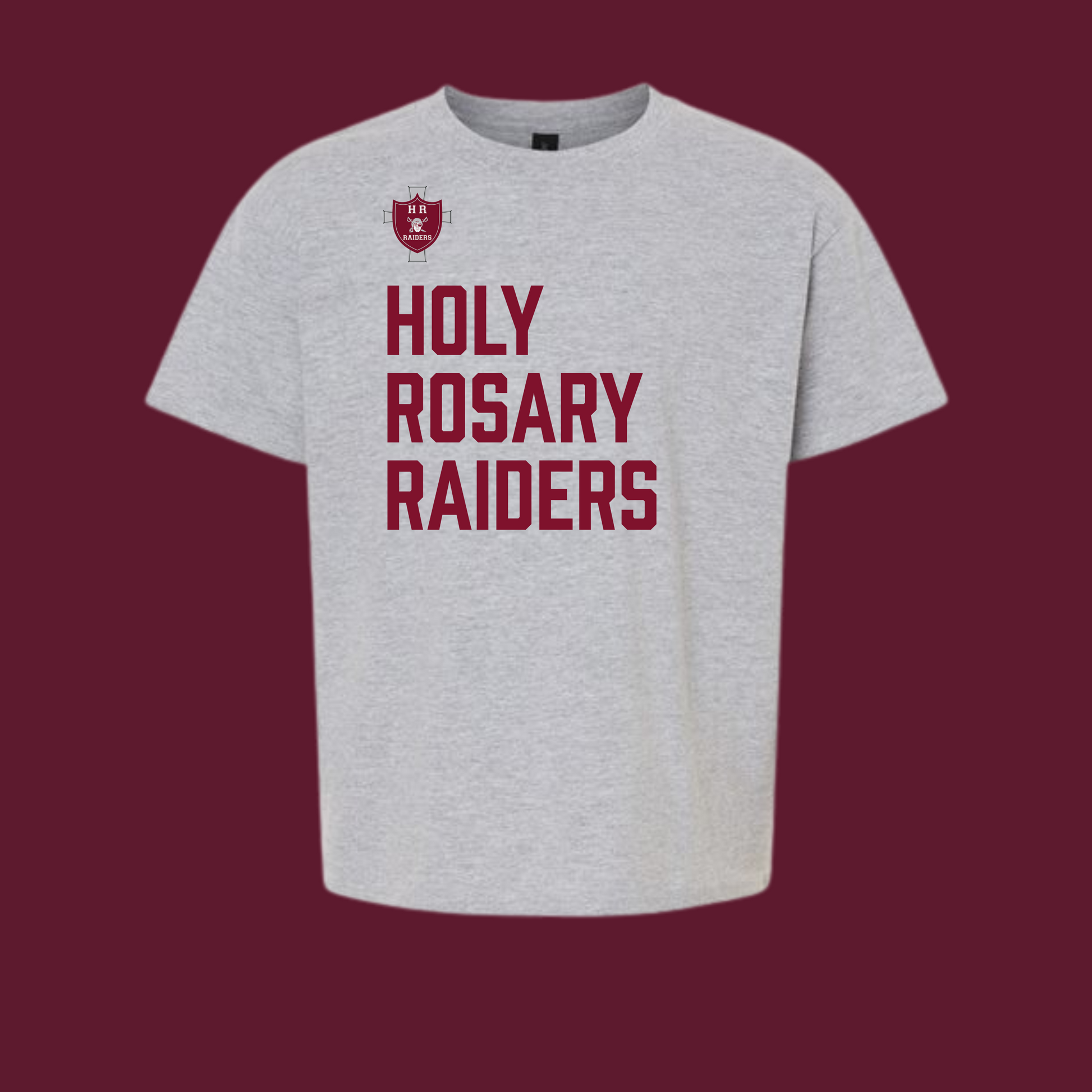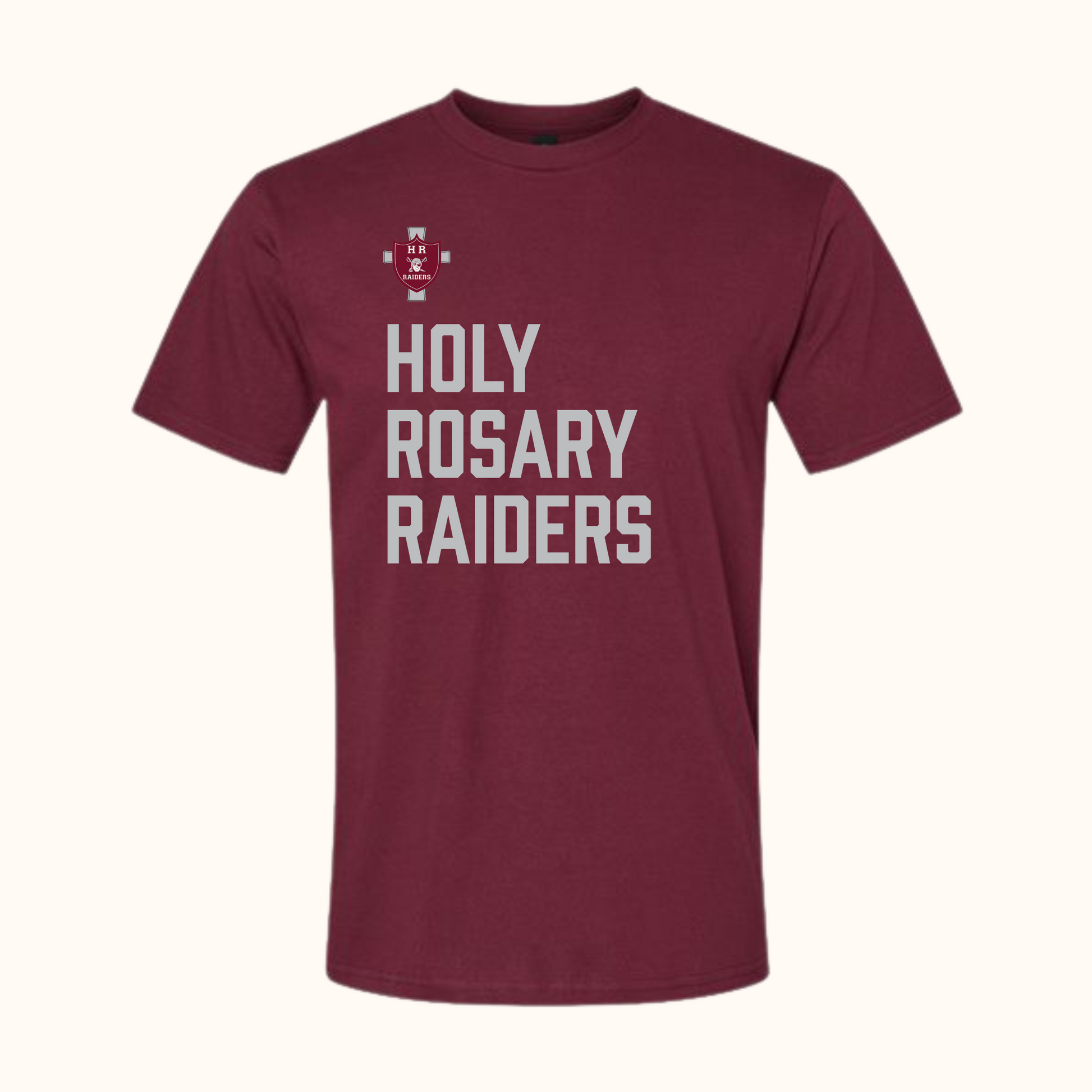 Rep your Raider pride in the Holy Rosary Raiders Classic Tee — a clean, timeless design that works for students, staff, and fans alike. Featuring the bold “HOLY ROSARY RAIDERS” wordmark and school crest, this tee is a staple piece for any wardrobe.