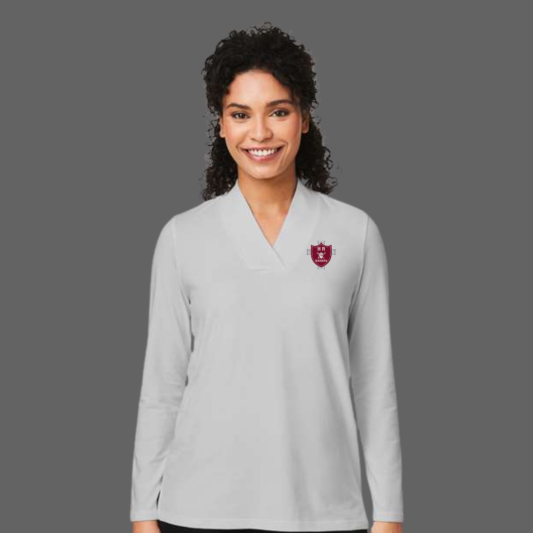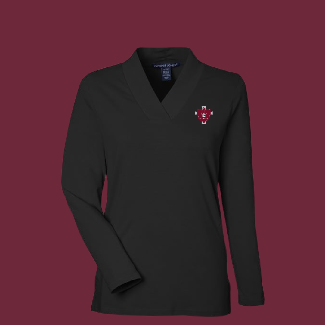 A polished essential designed for comfort and professionalism. The Holy Rosary Staff V-Neck Long Sleeve features the Raiders crest on the chest and a flattering open neckline for a clean, modern look. Perfect for staff uniforms, school functions, and day-to-day wear.