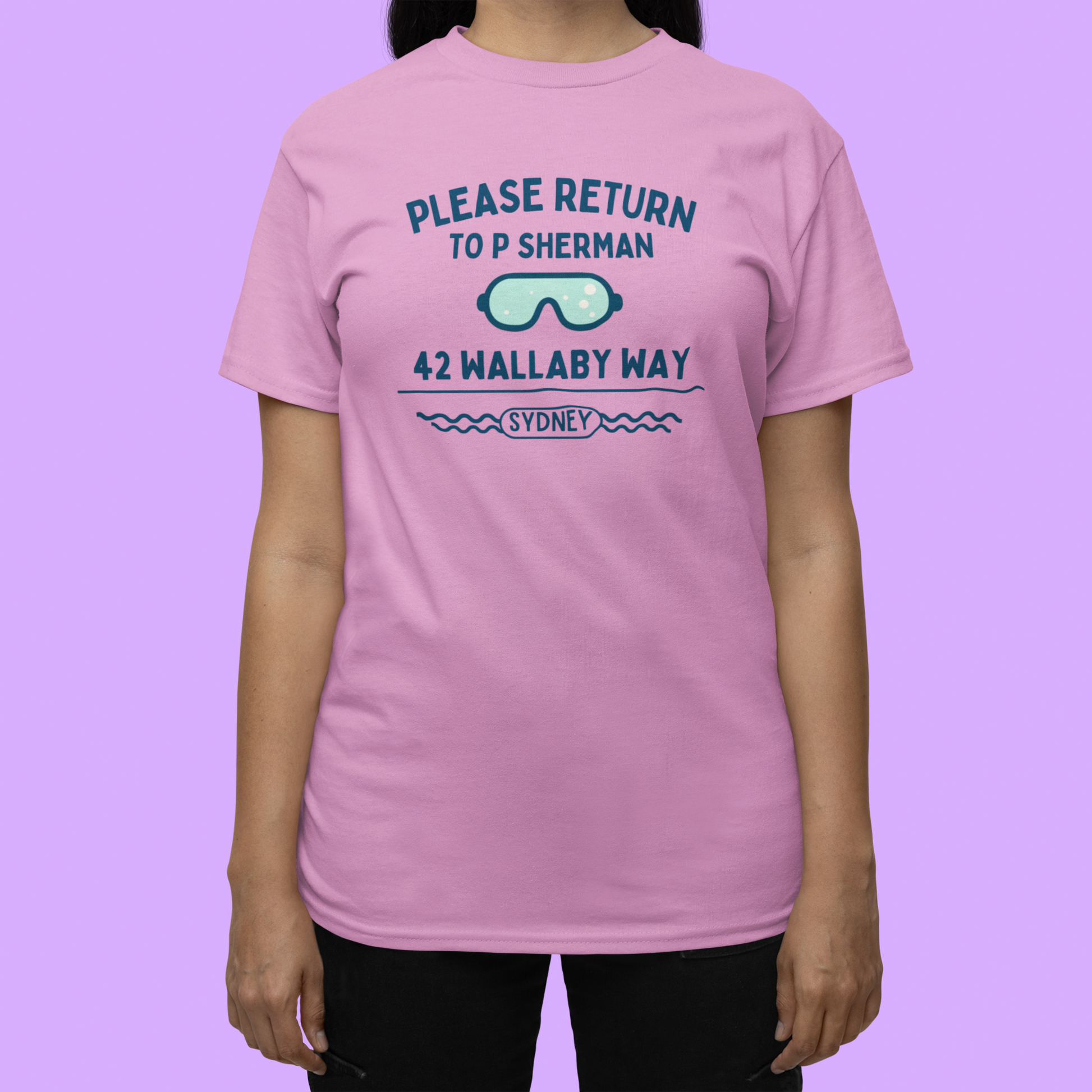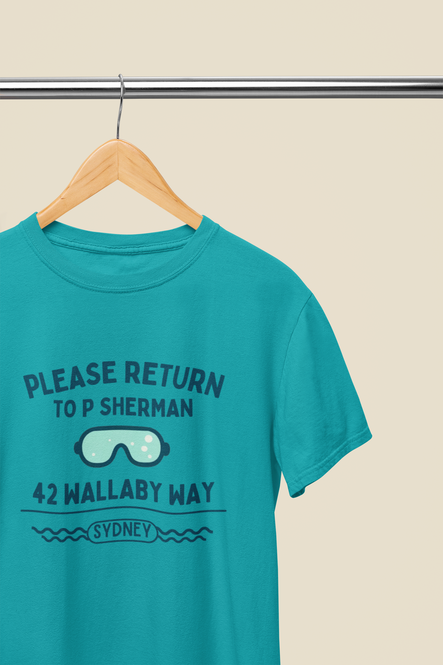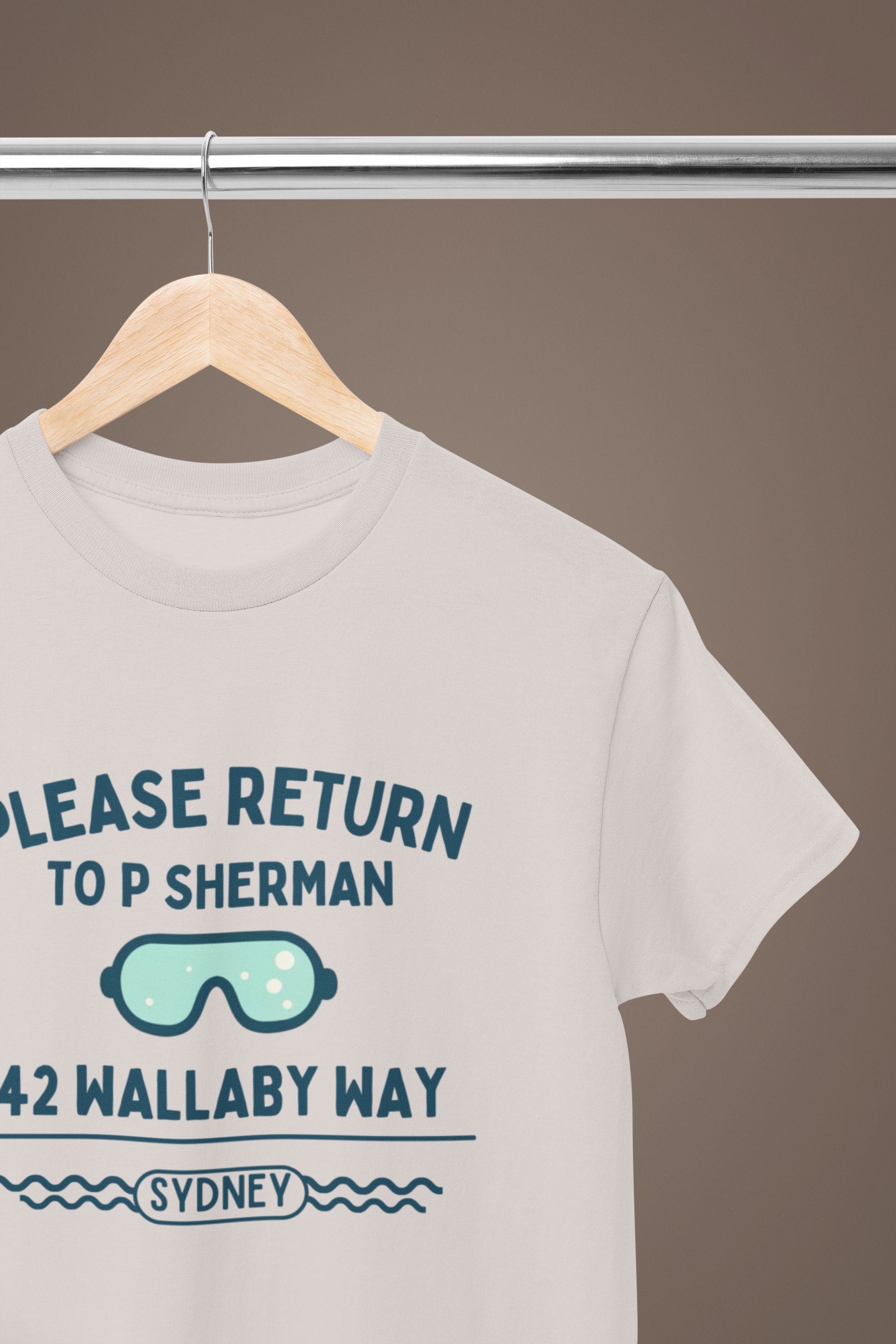 Inspired by the unforgettable adventures of Finding Nemo, our P Sherman Tees are a delightful nod to the classic tale we all love. These shirts bring the magic of storytelling to life with a playful twist on the iconic "P. Sherman, 42 Wallaby Way, Sydney."
