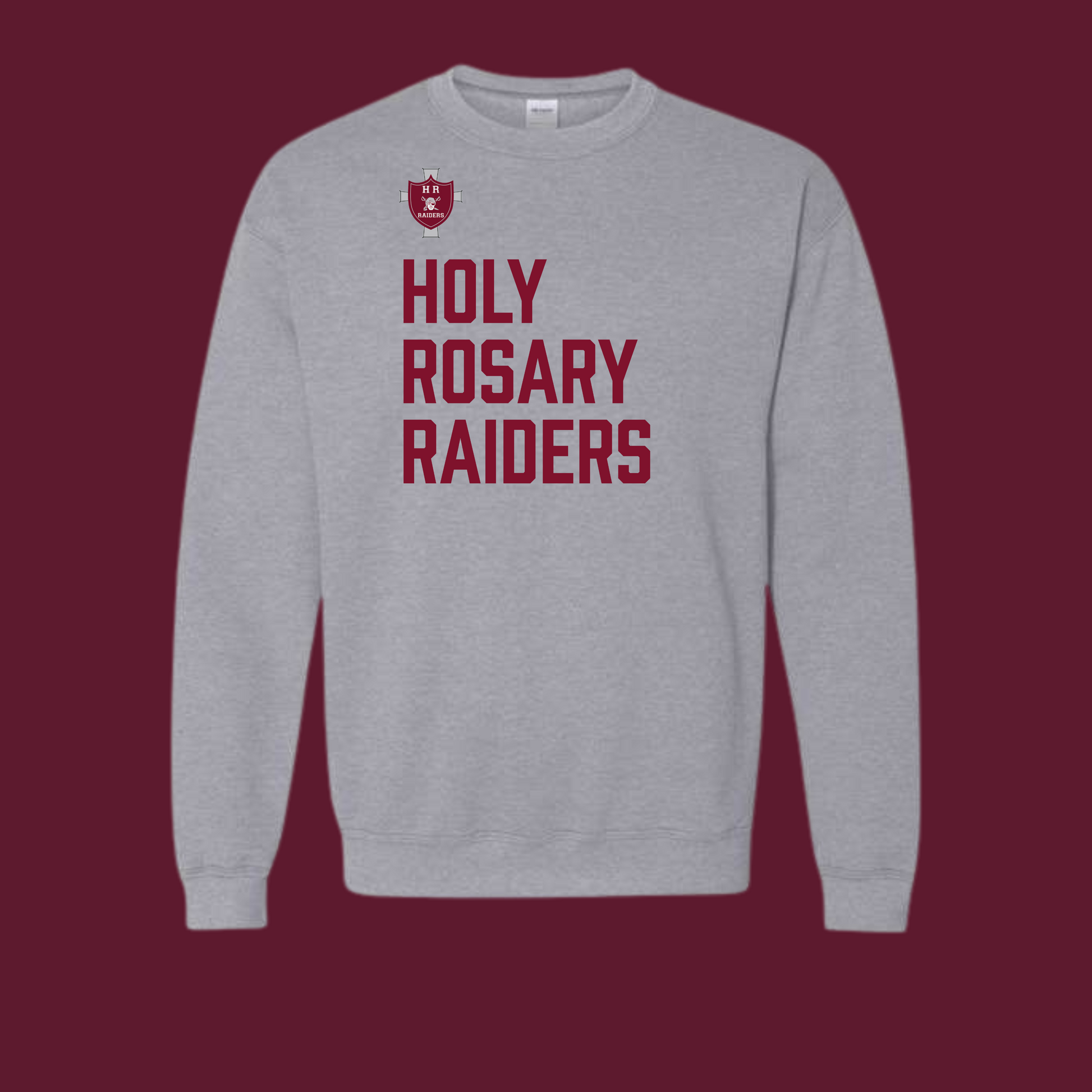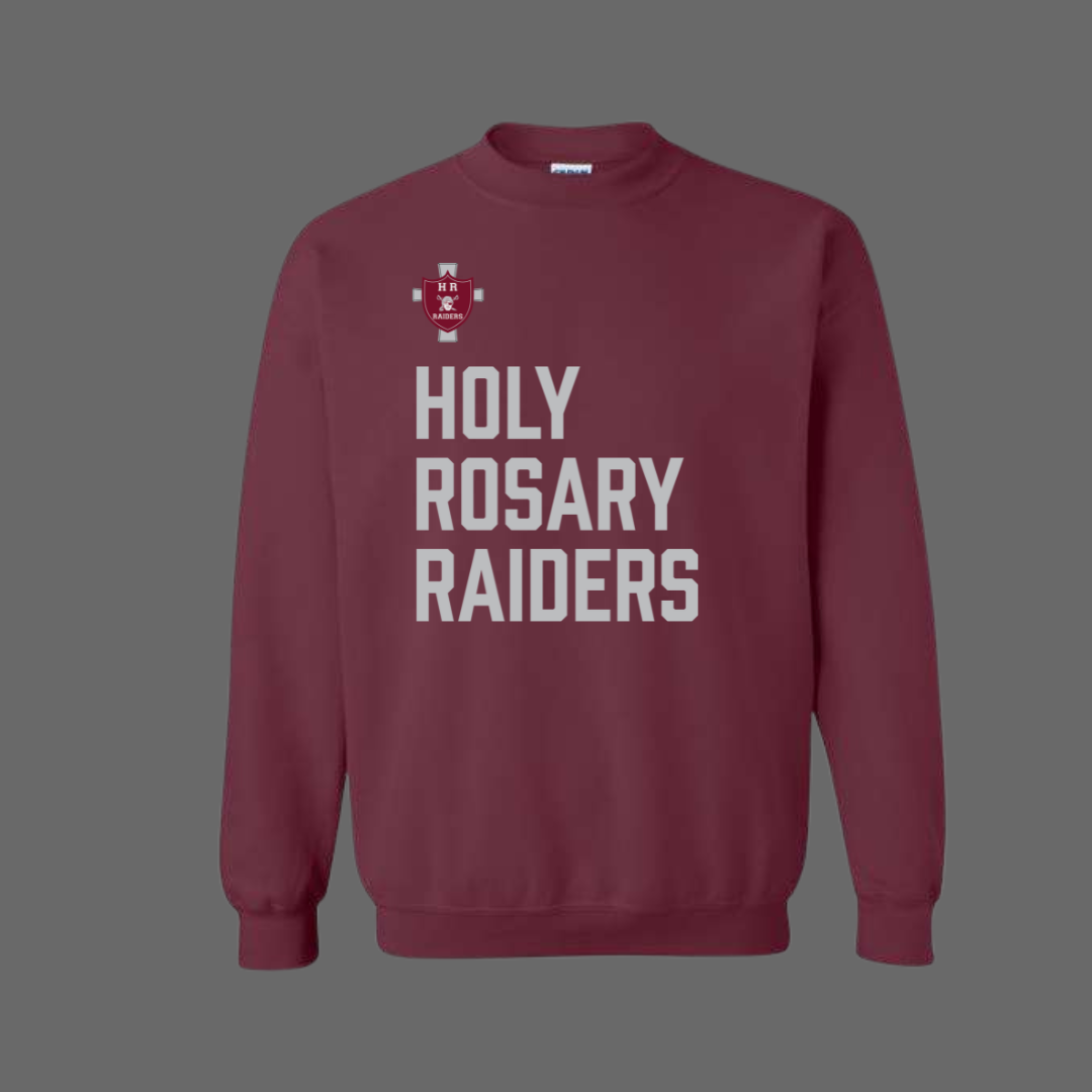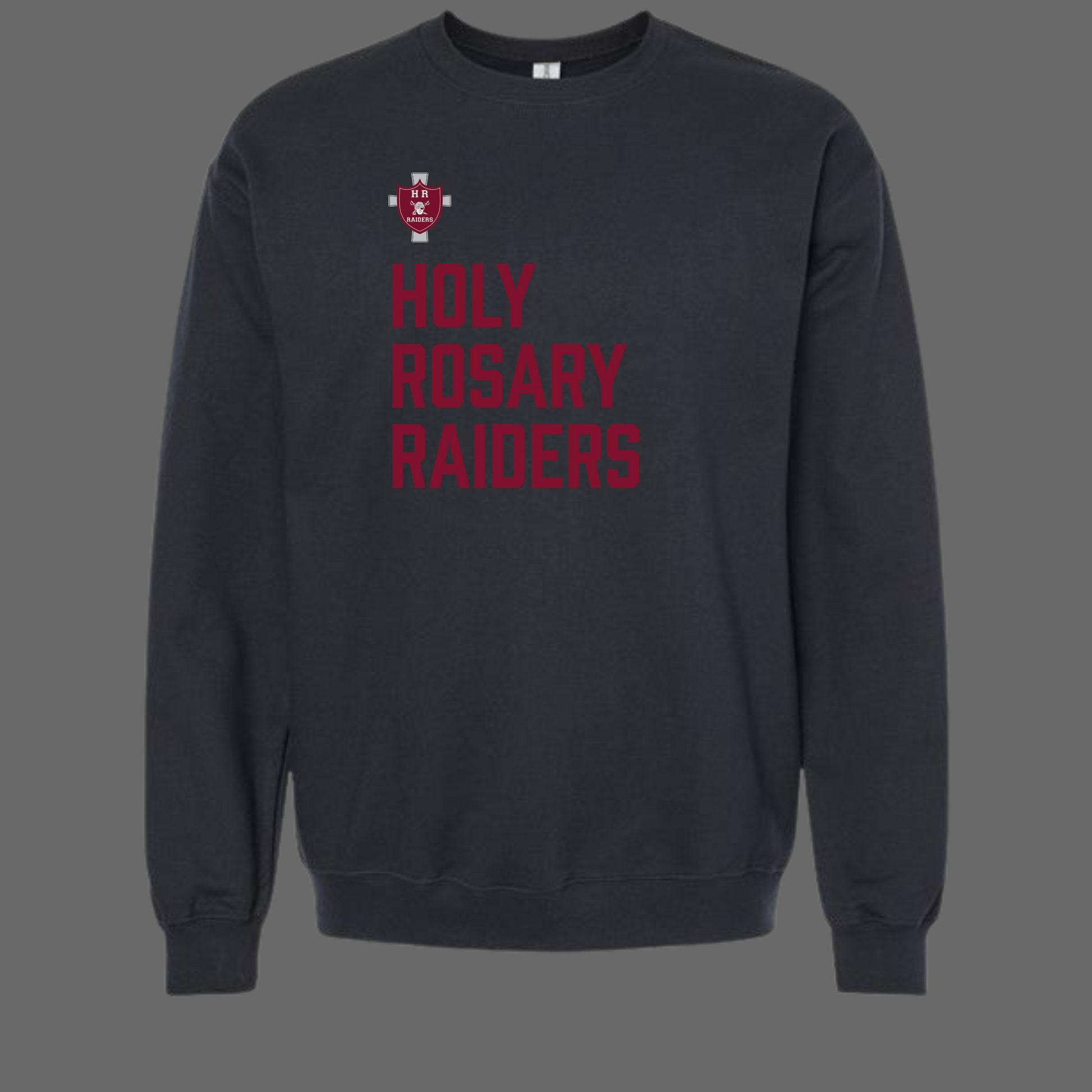 Rep your Raider pride in the Holy Rosary Raiders Classic Sweatshirt — a clean, timeless design that works for students, staff, and fans alike. Featuring the bold “HOLY ROSARY RAIDERS” wordmark and school crest, this tee is a staple piece for any wardrobe.