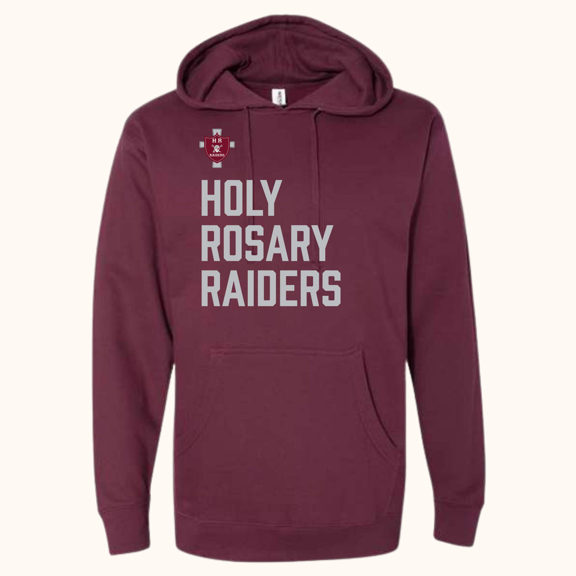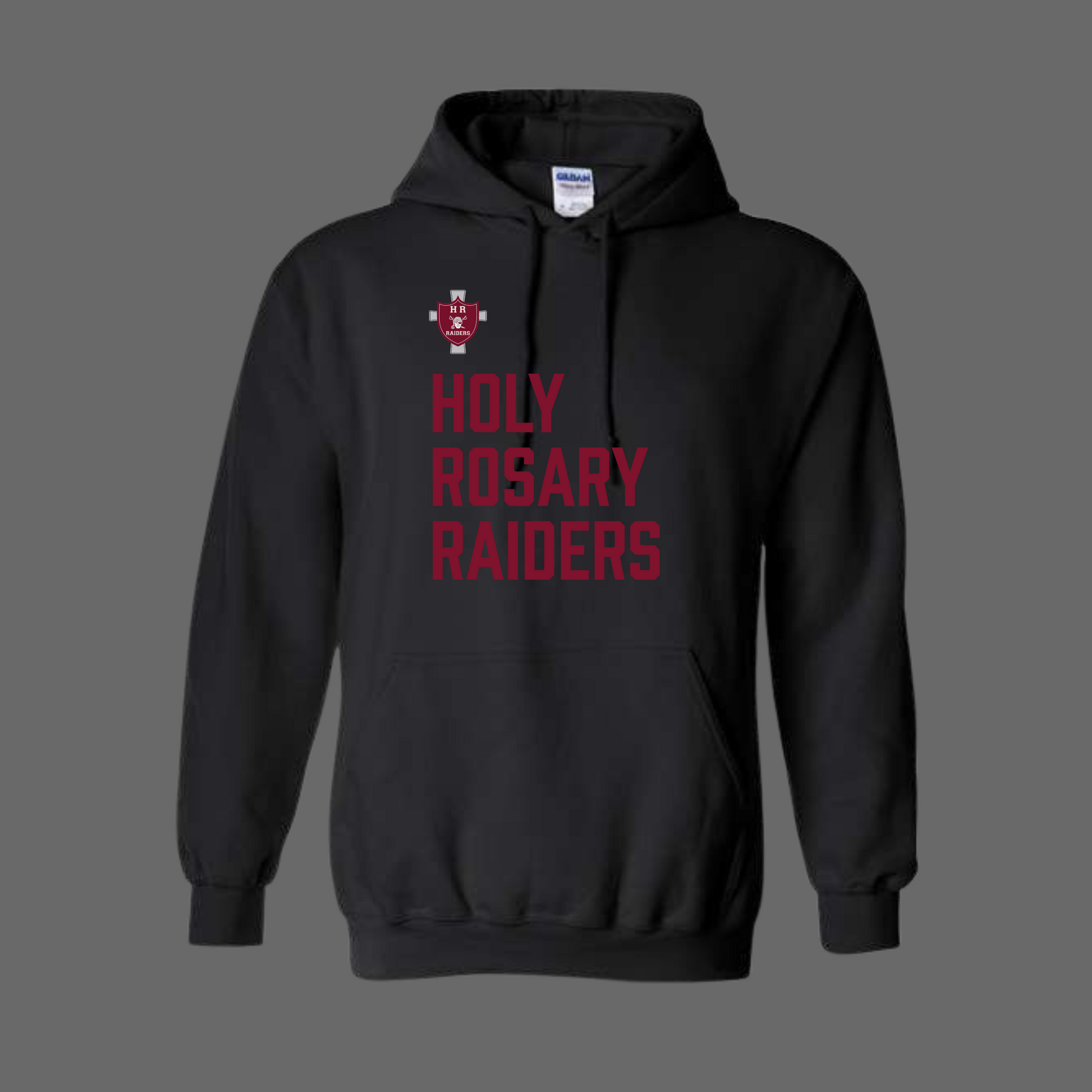Rep your Raider pride in the Holy Rosary Raiders Classic Hoodie — a clean, timeless design that works for students, staff, and fans alike. Featuring the bold “HOLY ROSARY RAIDERS” wordmark and school crest, this tee is a staple piece for any wardrobe.